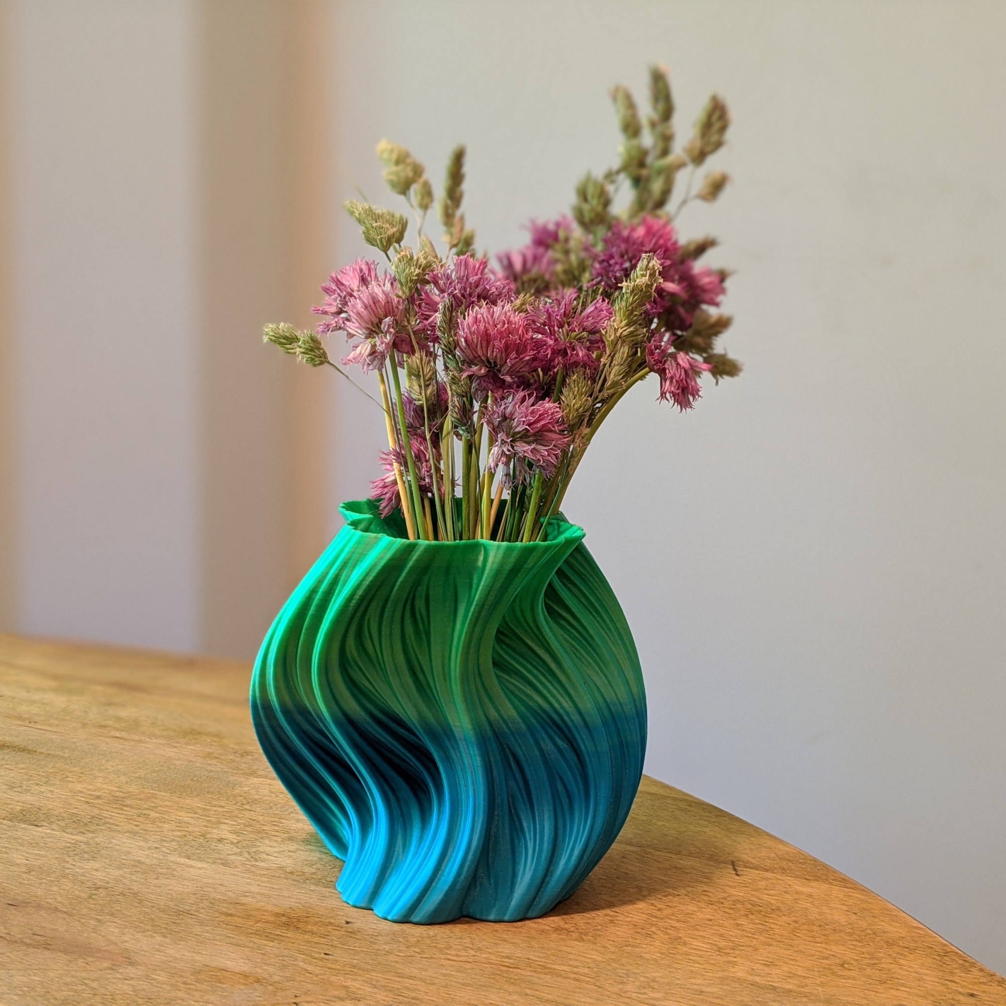 Design by virtox – #002 & #004. 3D printed and filled with wildflowers.