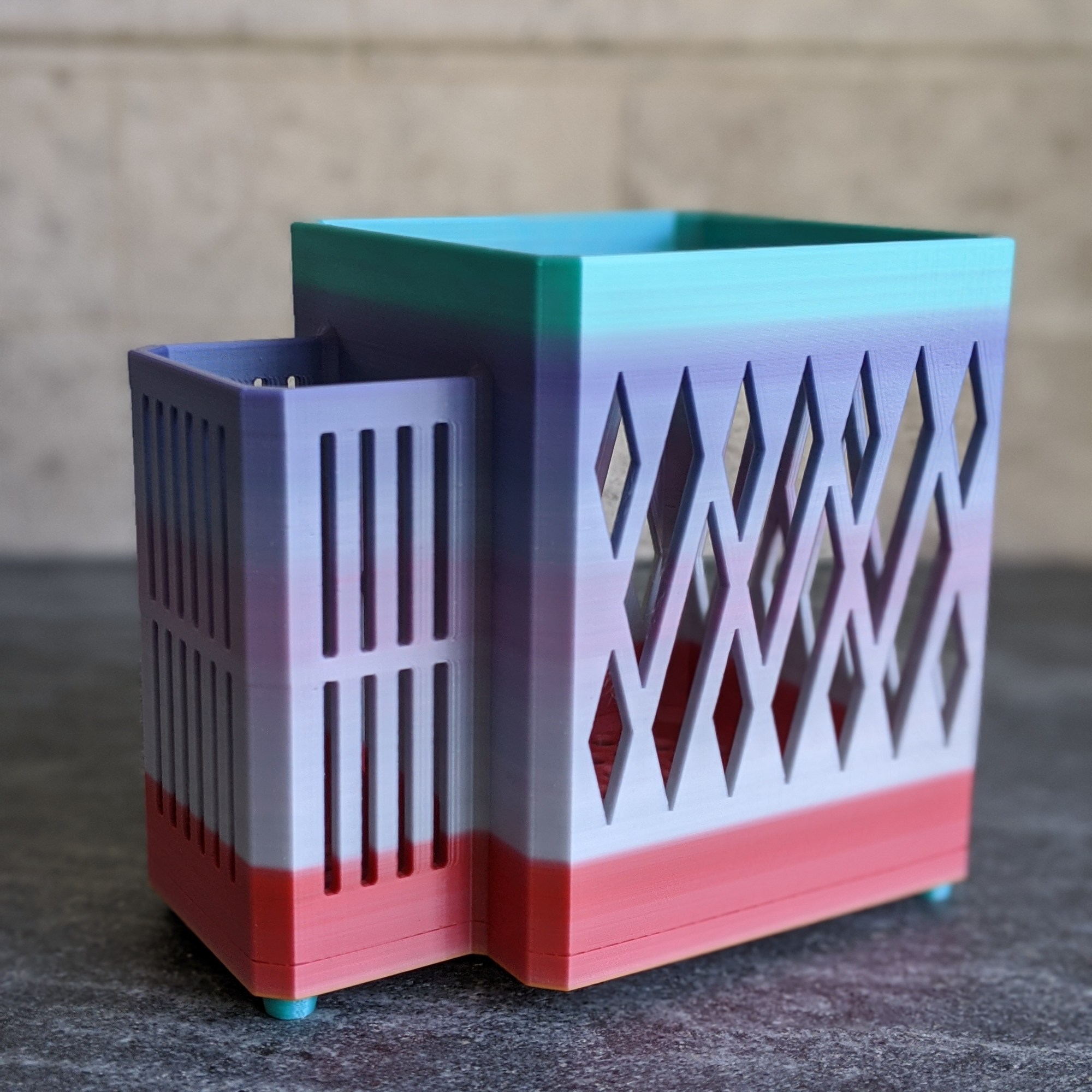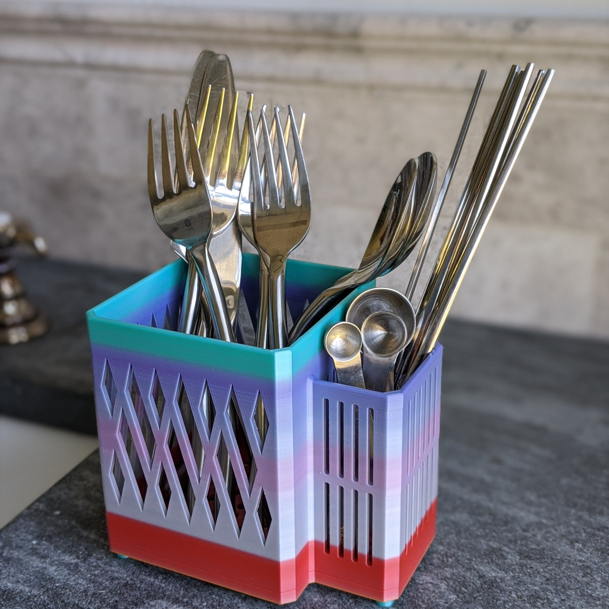 This is my original 3D-print design, and I designed it to create a dedicated space for chopsticks and small utensils. Posted here on Thingiverse.